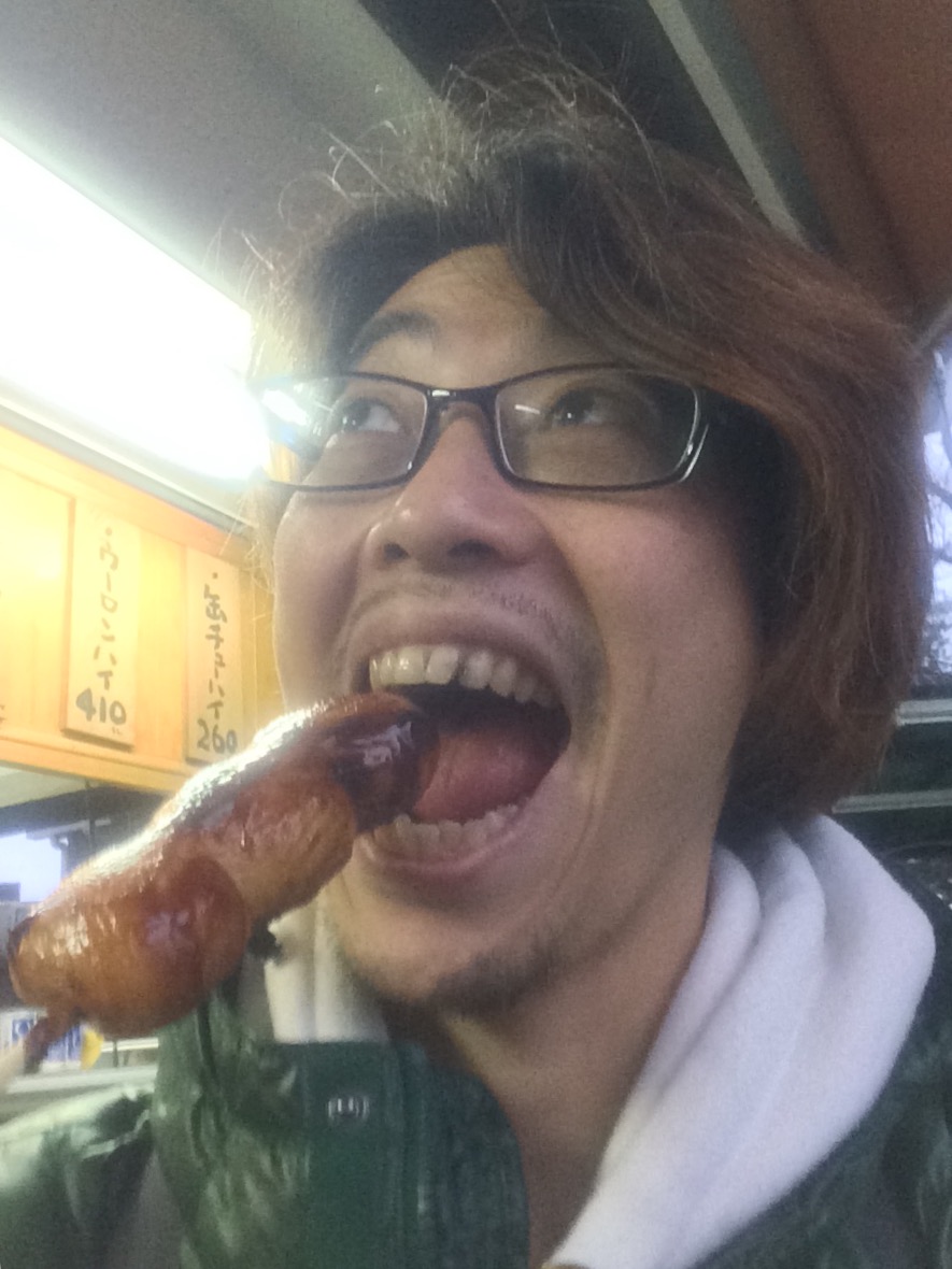 電車が登ったらひと休憩して焼き団子もぐもぐ。